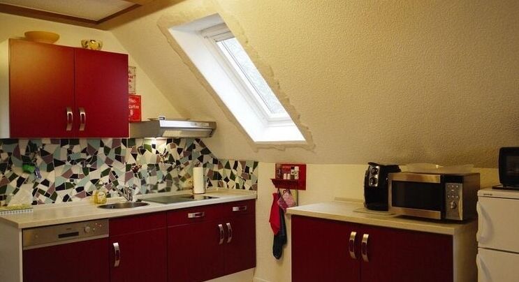 - Open keuken met o.a. 4 keramische glaskookplaten, koelkast, oven, magnetron, broodrooster, waterkoker en koffiezetapparaat