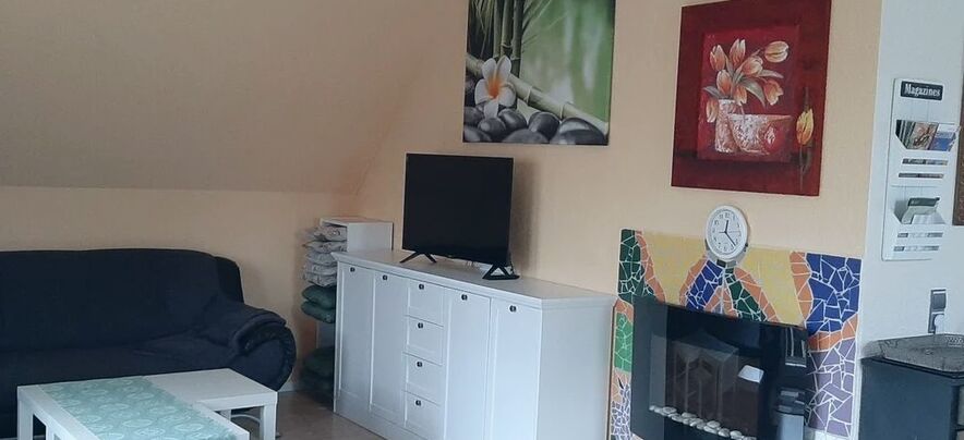 - Woonkamer met zit-/eethoek, sat-TV en open haard
