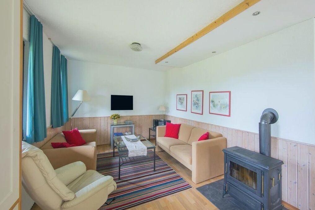 - Woonkamer met zit-/eethoek, 2-pers. slaapbank, sat-TV en open haard