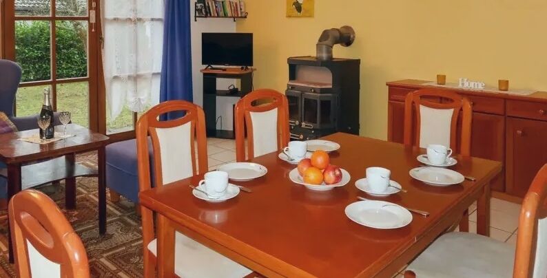 Dit geschakelde 6-persoons vakantiehuis met een oppervlakte van ca. 75 m2 is gezellig ingericht. De gelijkvloerse bungalow heeft een woon-/eetkamer met houtkachel en sat-TV, een open keuken met onder andere 4-pits kookplaat, oven, magnetron, koffiezetapparaat, waterkoker en broodrooster. Verder zijn er drie slaapkamers, een badkamer met douche en een apart toilet. U kunt gebruik maken van een groot, deels overdekt terras met tuinmeubilair en een barbecue. Het huis is rookvrij en 2 huisdieren zijn toegestaan. In het vakantiehuis kunt u gratis gebruik maken van WIFI.