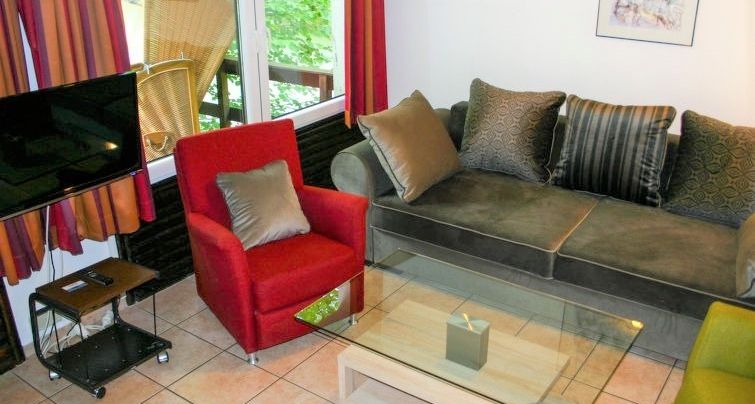 - Woonkamer met zit-/eethoek, flatscreen TV en stereoinstallatie