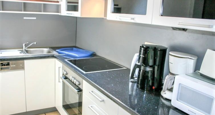 - Open keuken met o.a. 4 keramische kookplaten, vaatwasser, koelkast, oven, magnetron en koffiezetapparaat