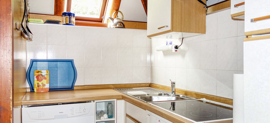 - Open keuken met o.a. 4 elektrische kookplaten, vaatwasser, koelkast, oven en koffiezetapparaat